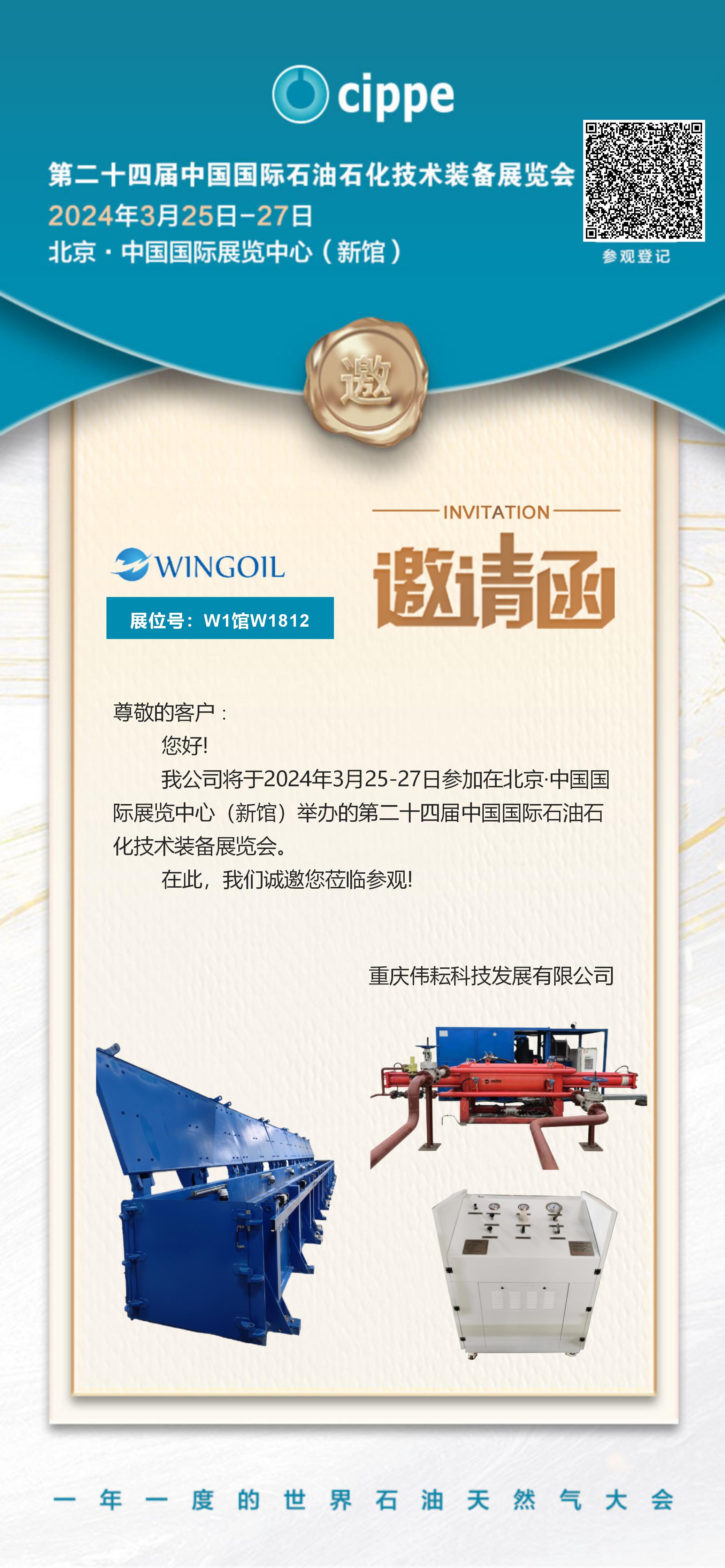 2024年3月25-27日,北京·中國國際展覽中心(新館)舉辦第二十四屆中國國際石油石化技術裝備展覽會,我們在W1館W1812靜候您的光臨,期待與您真誠攜手、共創佳績!