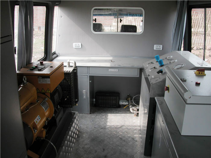 車載水壓試驗(yàn)系統(tǒng)是一種具有遠(yuǎn)程監(jiān)控及聲光報(bào)警系統(tǒng)的新型試壓裝置, 它將發(fā)電機(jī)動(dòng)力設(shè)備、水箱、氣源、增壓設(shè)備、控制系統(tǒng)和監(jiān)控系統(tǒng)均集成于工程車內(nèi),移動(dòng)方便,在井場(chǎng)無(wú)水、電、氣的條件下仍可對(duì)各種封井器、井口管匯、管串、采油樹(shù)等各種井口設(shè)備進(jìn)行現(xiàn)場(chǎng)靜水壓力測(cè)試作業(yè)。